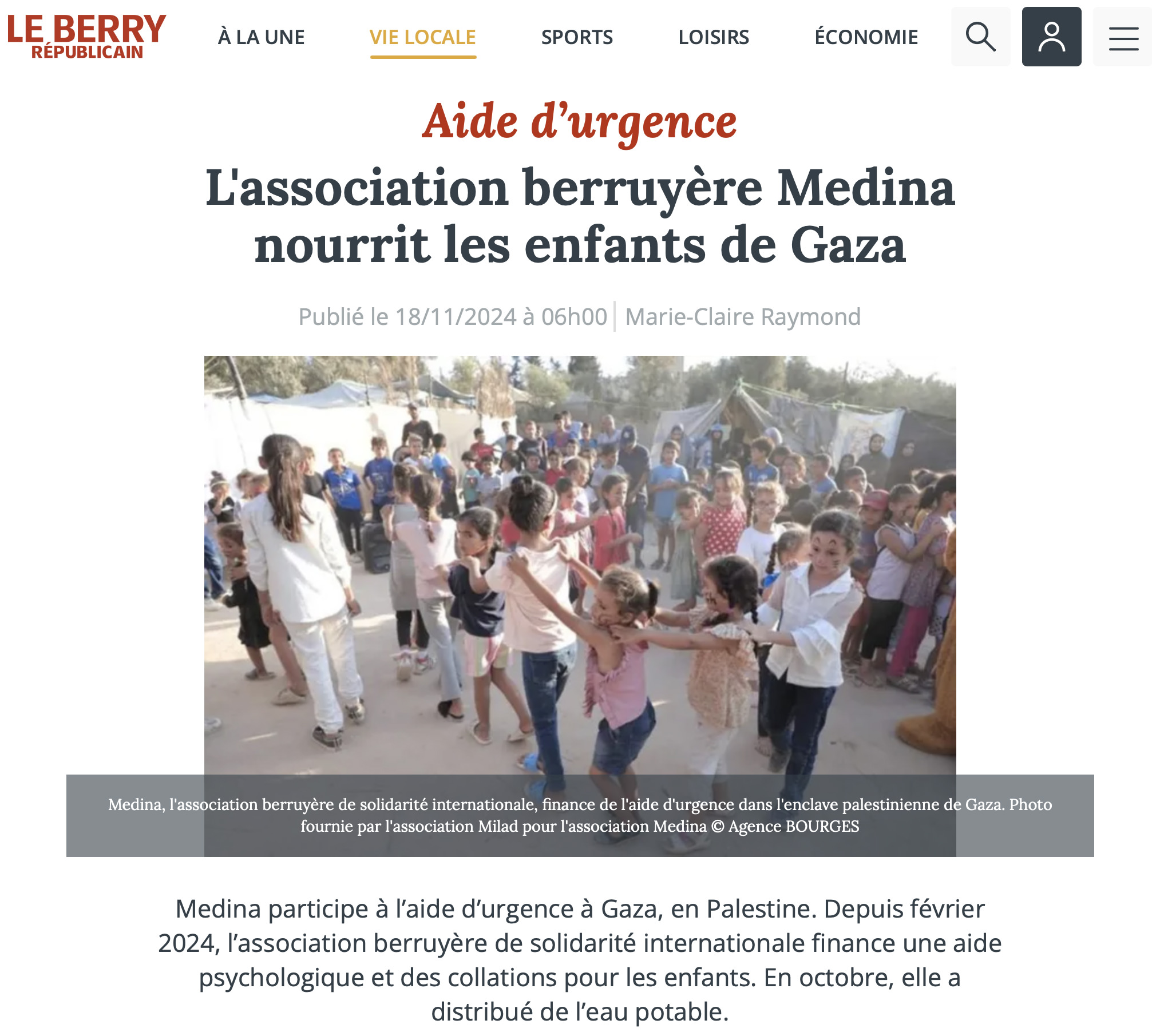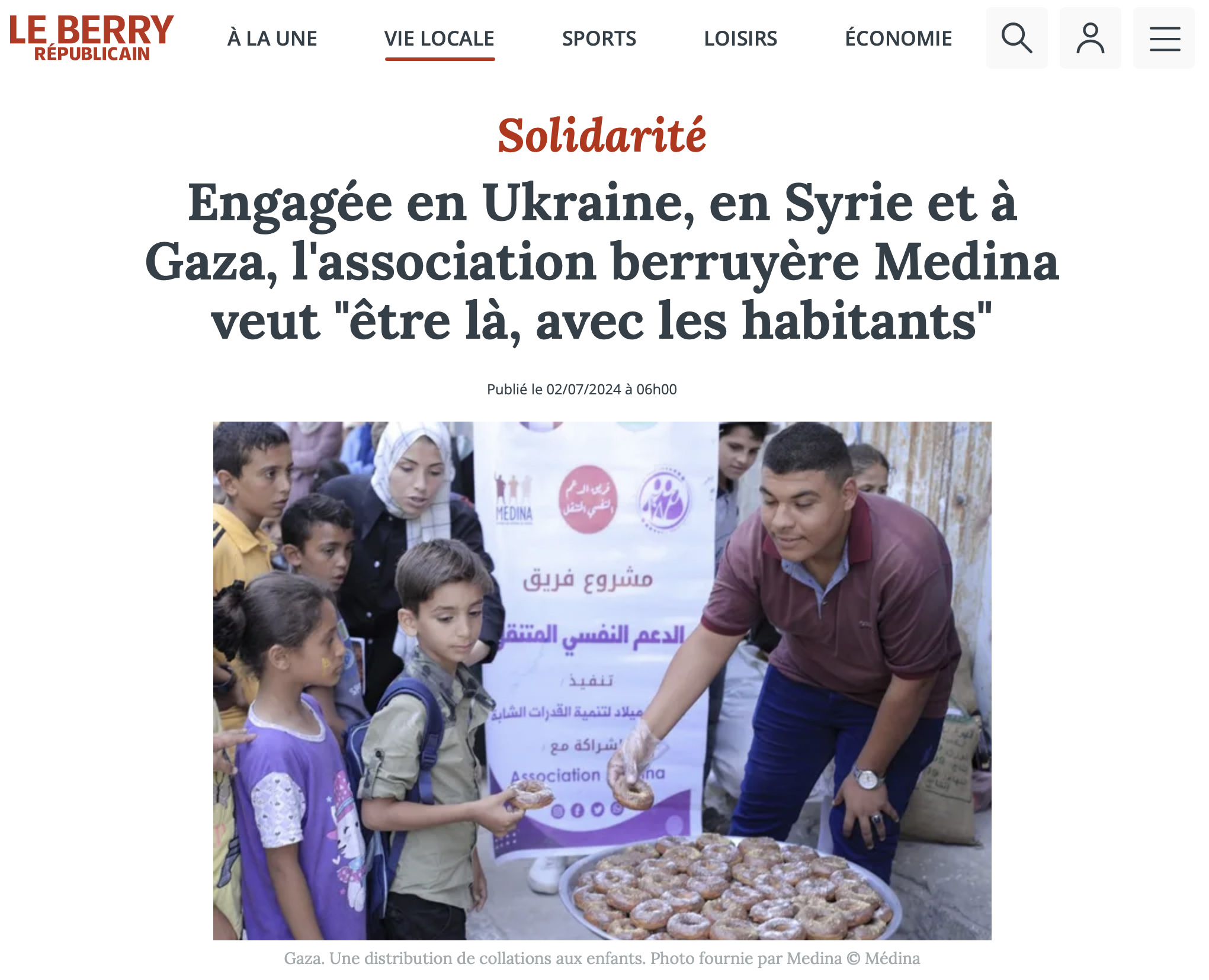 L'association berruyère Medina nourrit les enfants de Gaza